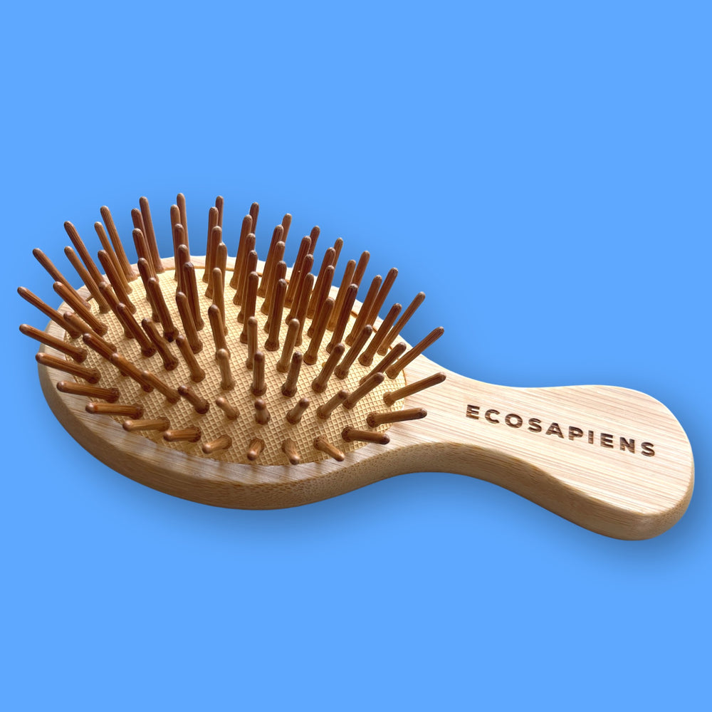 El Cepillo Mini de Bambú Ecosapiens, es ecológico, tiene un hermoso acabado en madera y cerdas de bambú.