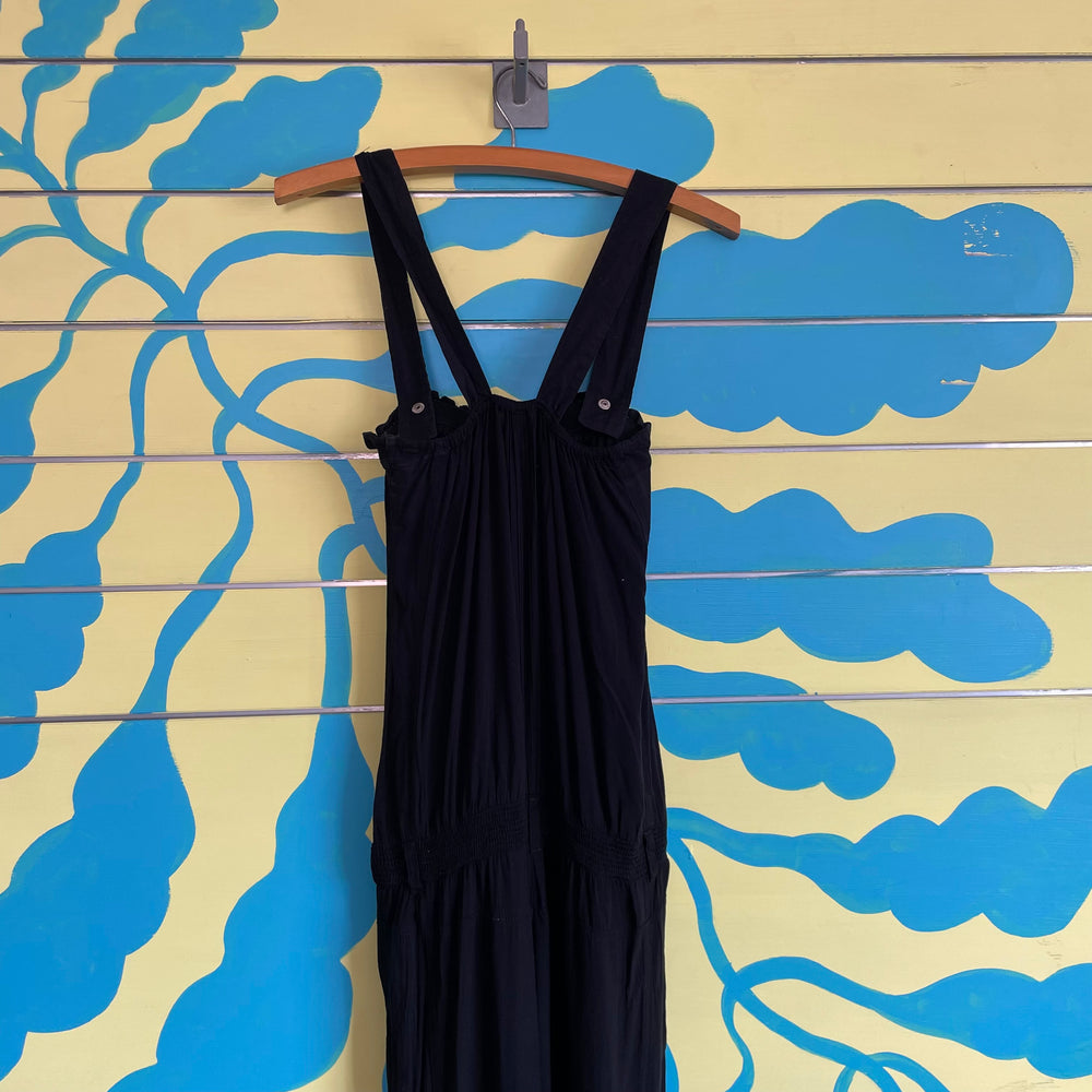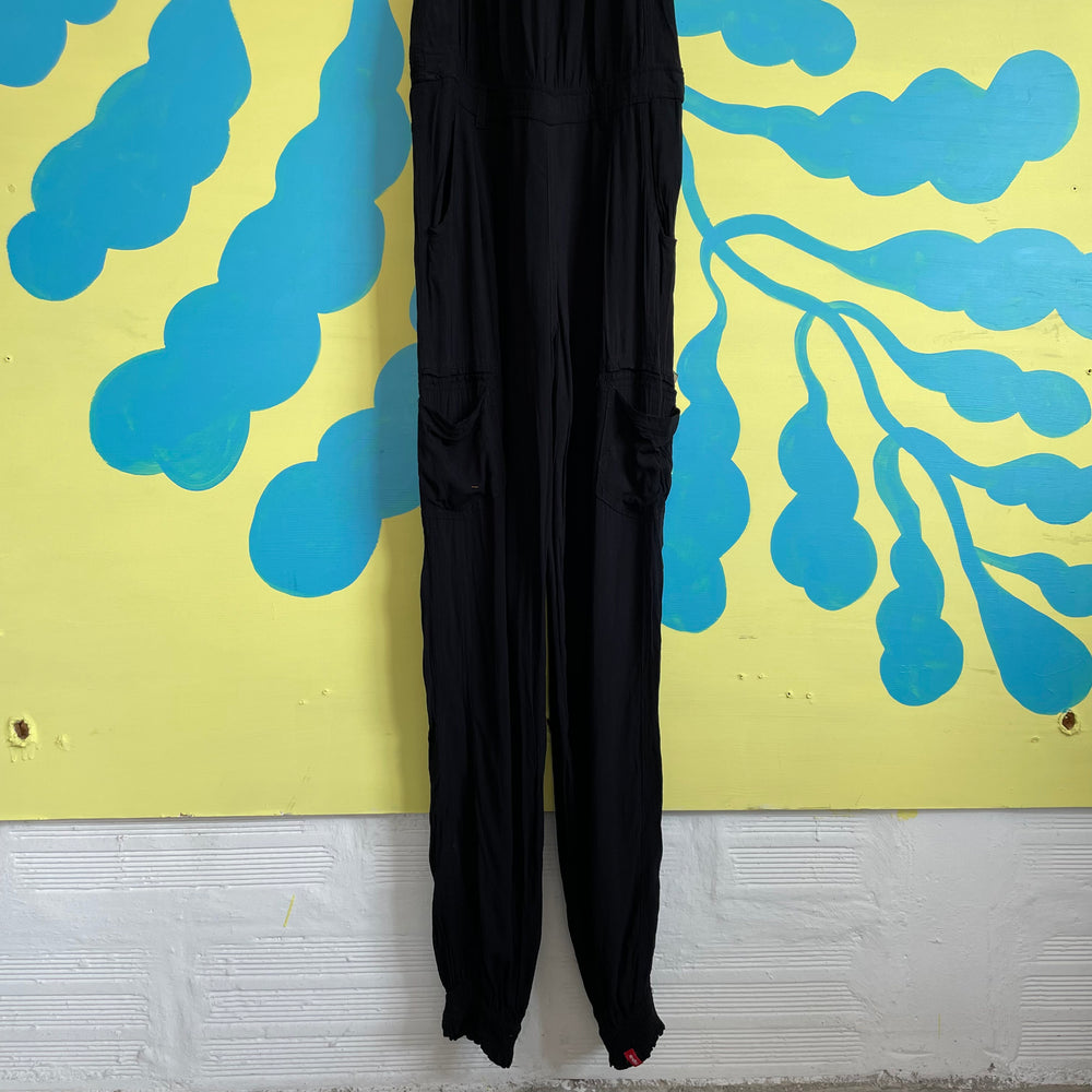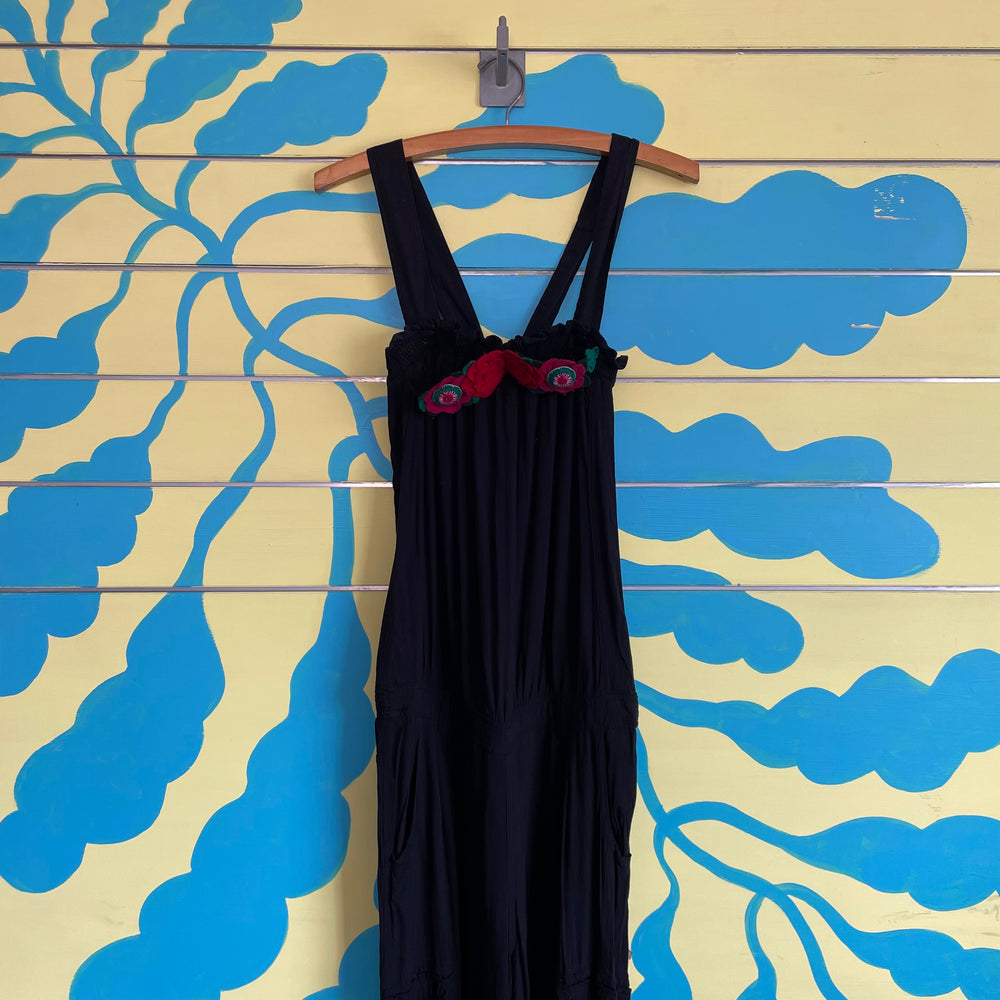 Enterizo Negro Flores Rojas Talla S - Second Hand (Ropa de Segunda Mano)