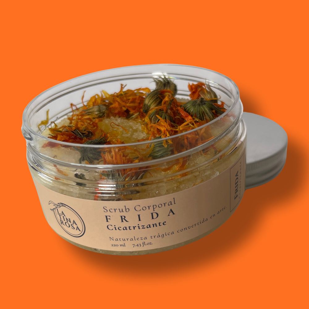 El Exfoliante Corporal Frida, o scrub corporal, mezcla el azúcar orgánica, la sal de mar y los aceites hidratantes y suavizantes.