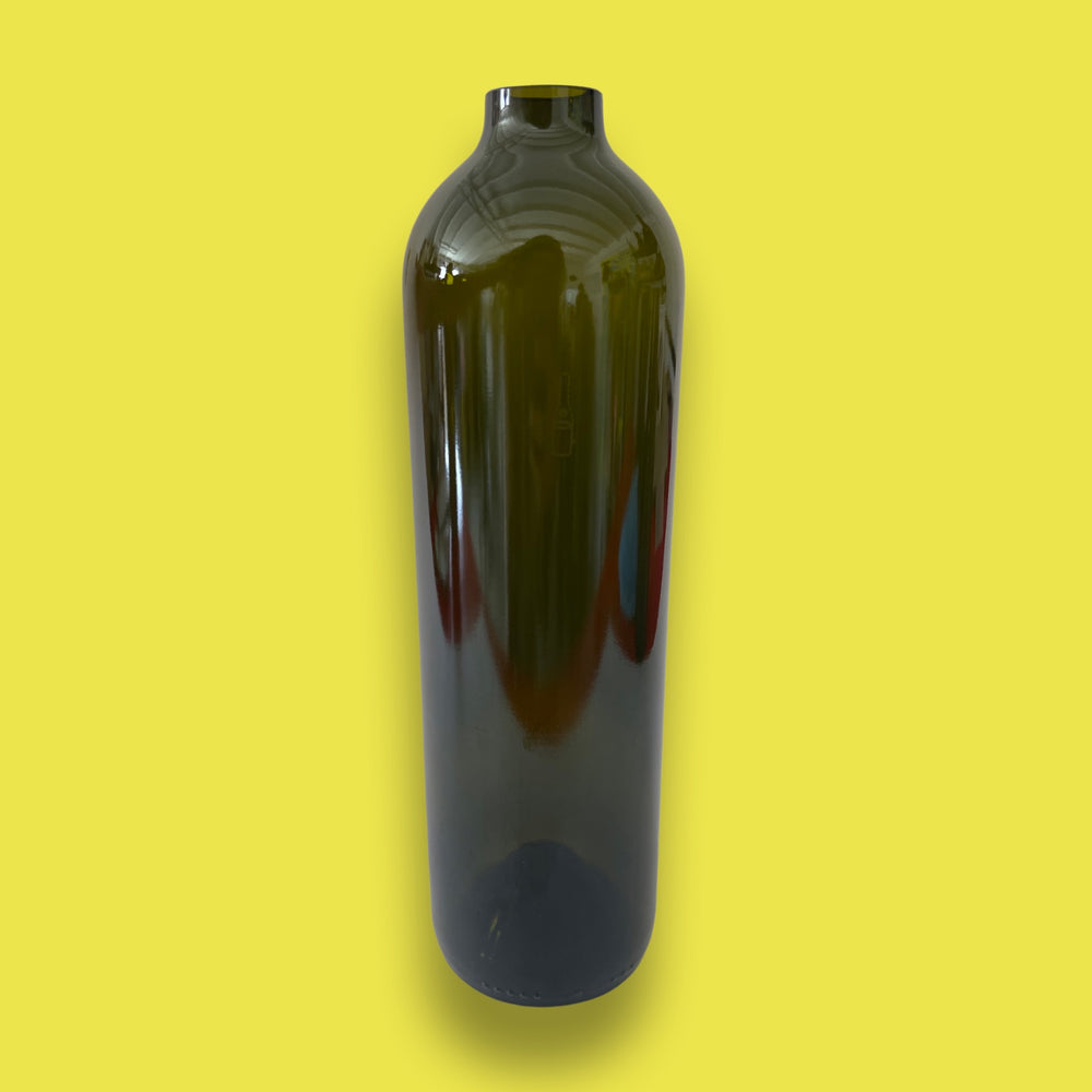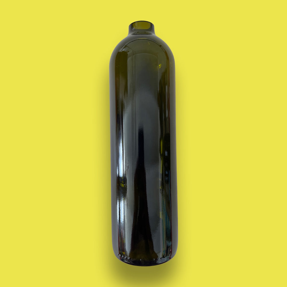 El Florero de vidrio Inclinado, es un bello objeto diseñado a partir de las botellas de vidrio una vez utilizadas, ya que las botellas, que no logran tener un ciclo sostenible de reciclado, se convierten en costosos desechos que generan una gran