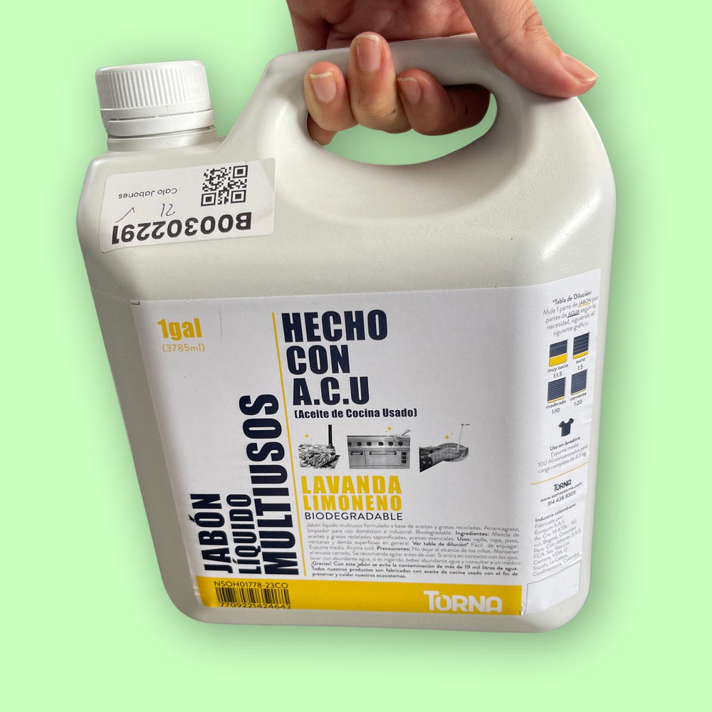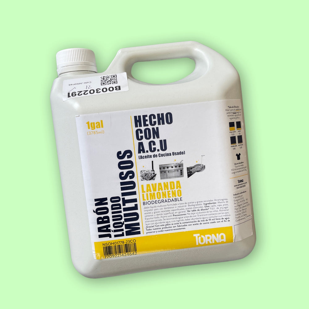 El Jabón Líquido Multiusos, contiene 3.785 litros, es un jabón concentrado natural biodegradable que necesita dilución según el nivel de suciedad que desees limpiar, además, es suave con tus manos.