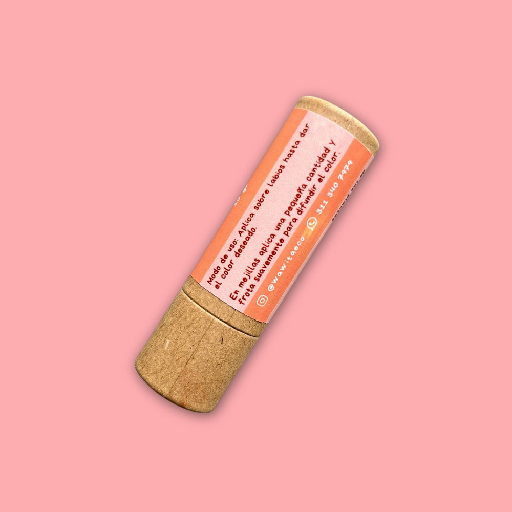 Color natural a base de achiote, libre de colorantes artificiales. Un producto versátil que hidrata y nutre mientras realza la belleza de labios y mejillas. Ideal para todo tipo de piel.