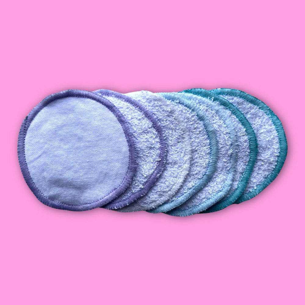 Las Toallitas Desmaquilladoras Reutilizables x 7, son de doble faz, suaves, absorbentes y fáciles de lavar.