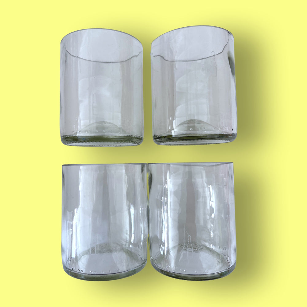 Los Vasos Cortos de Vidrio 8 Onzas Set x 4, son unos bellos vasos diseñados a partir de las botellas de vidrio una vez utilizadas, ya que las botellas, que no logran tener un ciclo sostenible de reciclado, se convierten en costosos desechos que generan una gran contaminación ambiental, perdiéndose y desaprovechando su potencial.